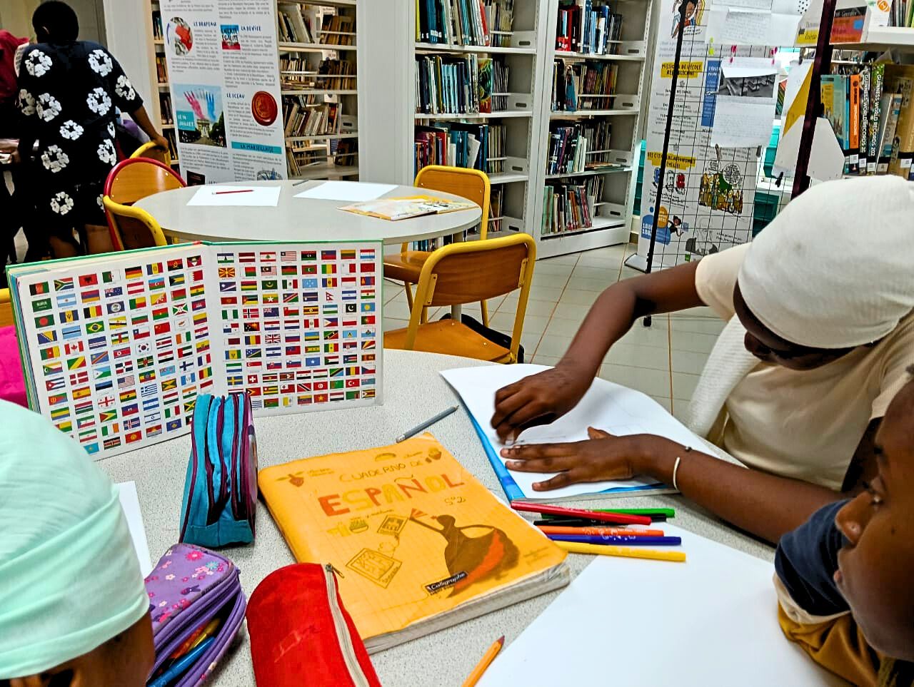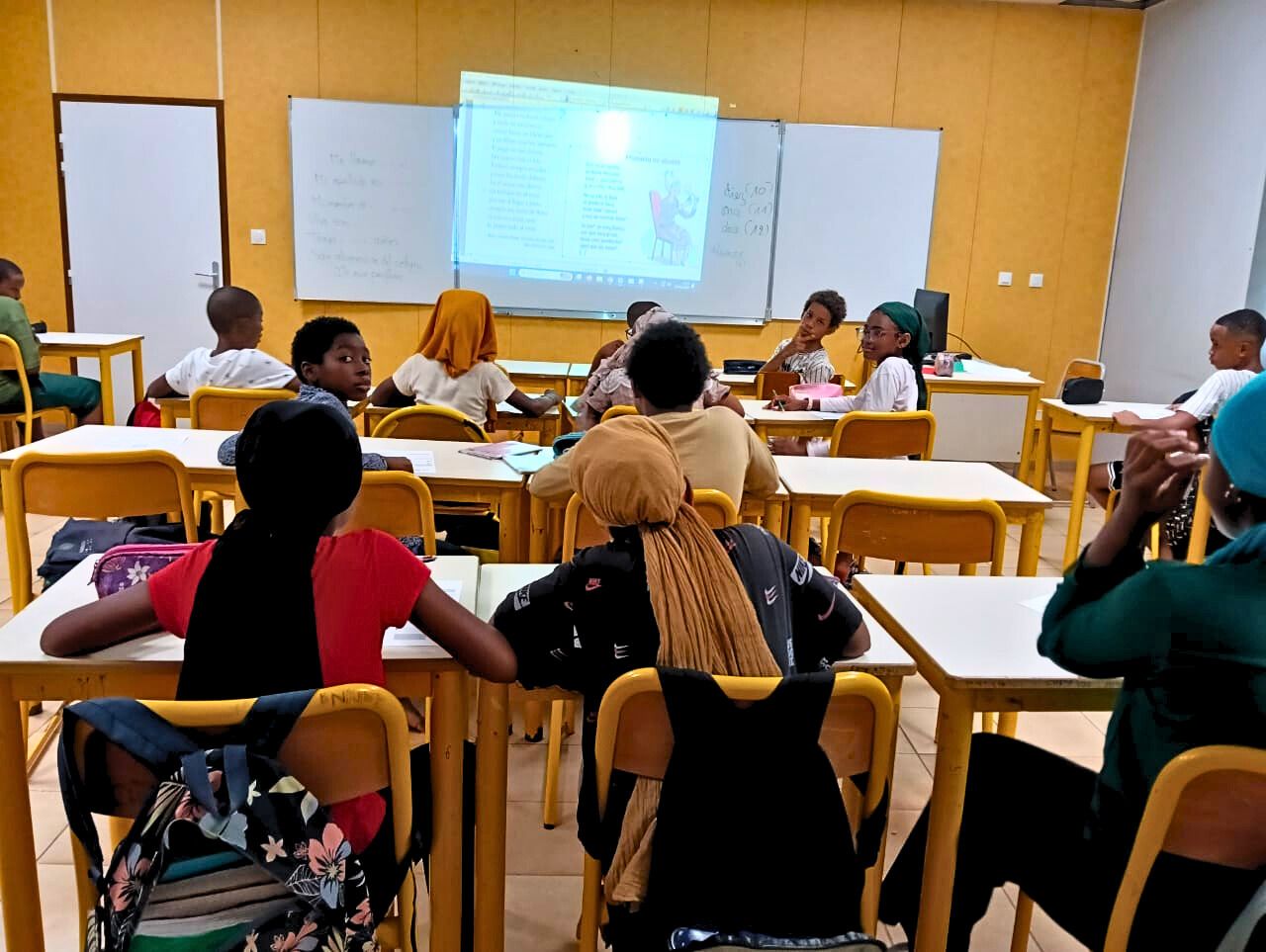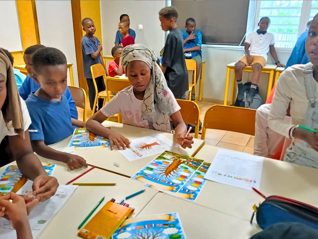Plusieurs classes de CM2 ont été accueillies cette journée. Avec Mme Ahamadi, Mme Abdallah Boina et Mme Soilihi, les élèves ont participé à diverses activités : l’arbre des langues, des jeux ludiques autour de la traduction d’un mot ou d’un thème en plusieurs langues, ainsi que l’identification et la réalisation de drapeaux.